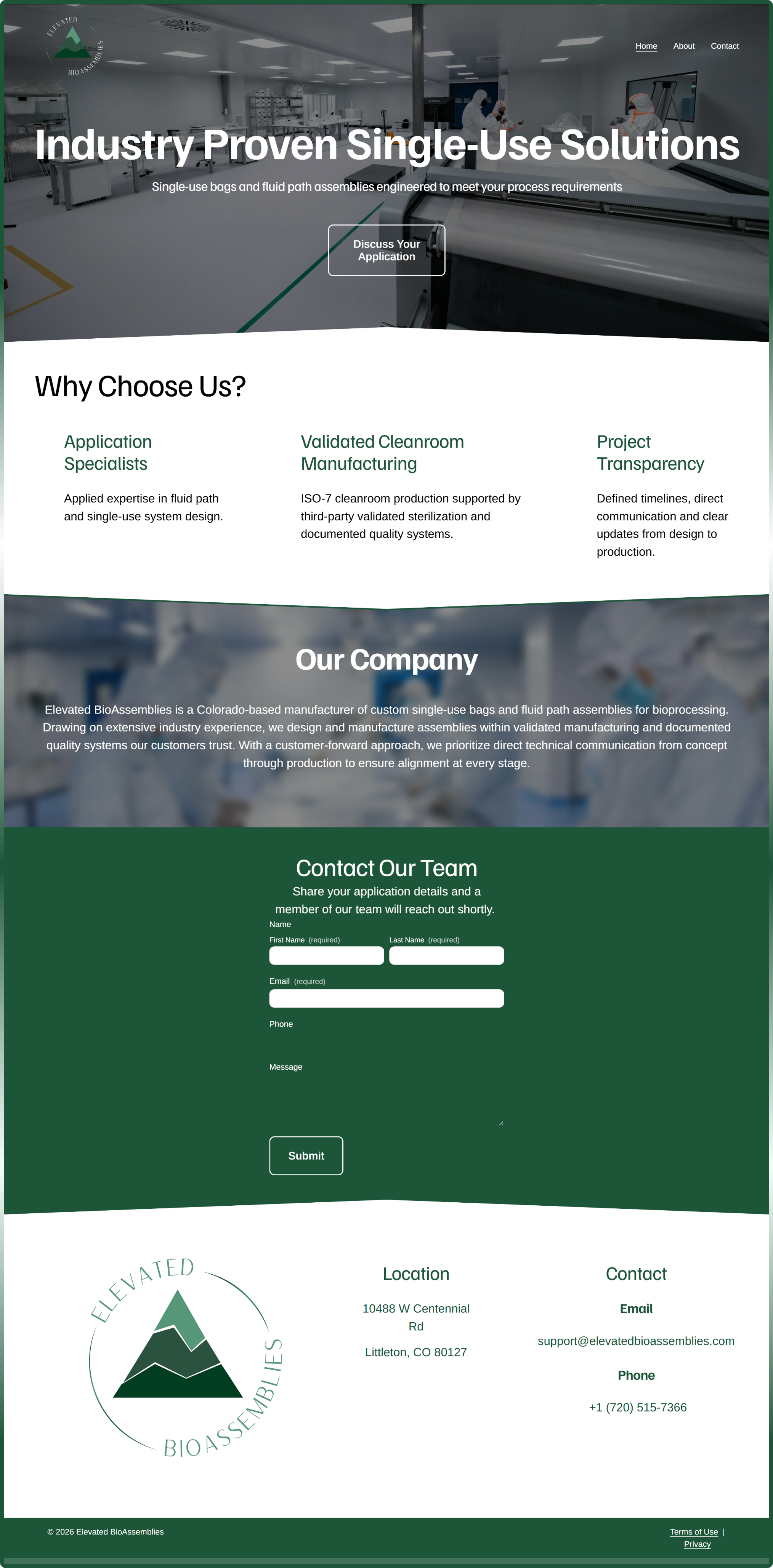 The resulting website provided Elevated BioAssemblies with a professional launch platform for engaging customers and partners.